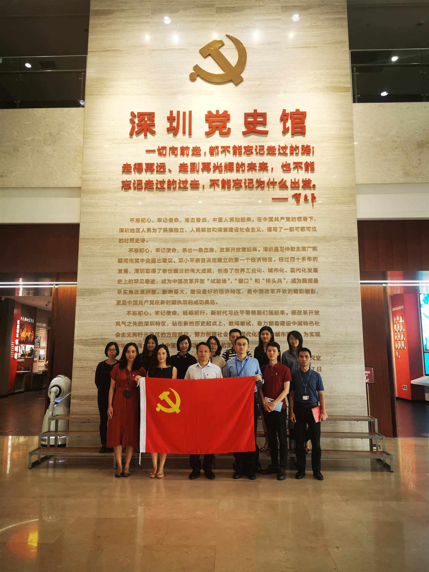 隨后,徐洪濤副書(shū)記與支部黨員、積極分子共赴深圳檔案中心參觀(guān)“不忘初心、牢記使命”主題文獻館、深圳黨史館?;顒?dòng)回顧了黨的光輝歷程,以及深圳從解放寶安到建設中國特色社會(huì )主義先行示范區的歷史實(shí)踐,同志們從中受到了黨性的洗禮,進(jìn)一步提升了黨性修養,增強了組織的凝聚力和戰斗力。